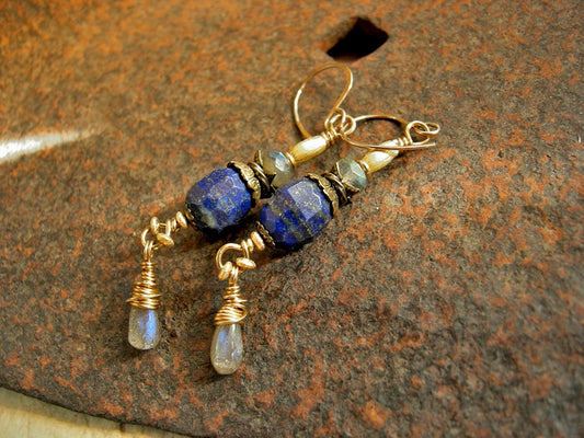 Hand cut natural stone tab earring designs by Elksong Jewelry.