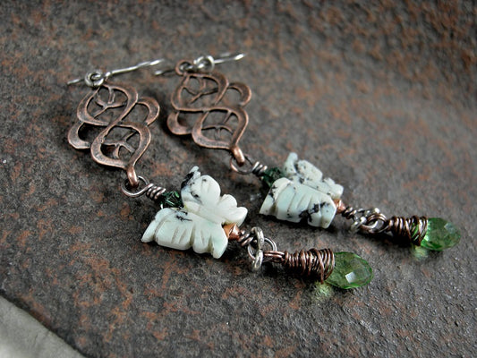 Hand cut natural stone tab earring designs by Elksong Jewelry.