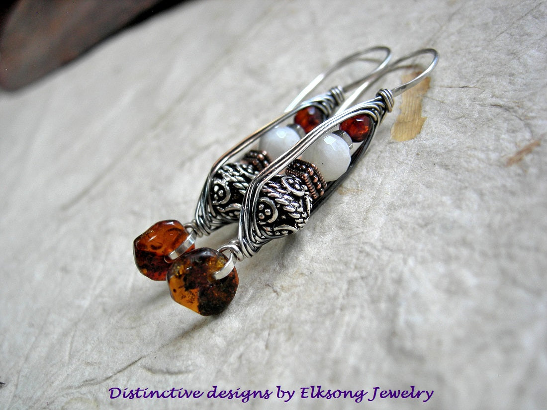 An assortment of elegantly long drop earrings by Elksong Jewelry.