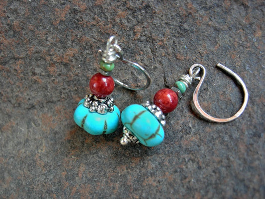 Santa Fe Color Gem Stack Earrings, Turquoise, Coral & Silver