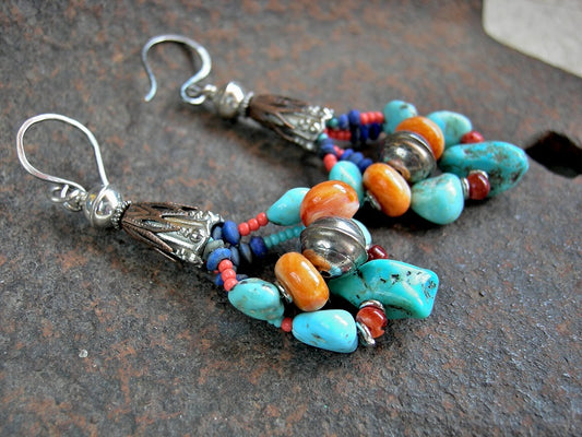 Colorful Gemstone Earrings, Amerind Inspired, Turquoise,Spiny Oyster