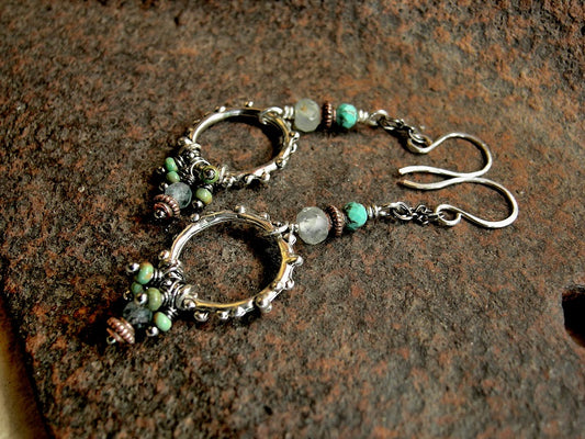 Boho Turquoise & Aquamarine Earrings, Dainty Clusters & Silver Rings