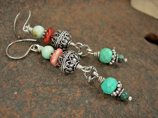 Sterling & Colorful Gemstone Earrings, Turquoise, Spiny Oyster Shell