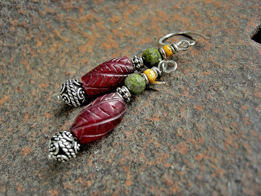 Last of Autumn Earrings, Fall Color Jasper, Wrapped Hook Style