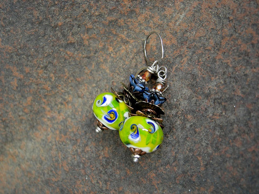 Colorful Boho Funky Earrings, Studio Made Lampwork Glass Beads