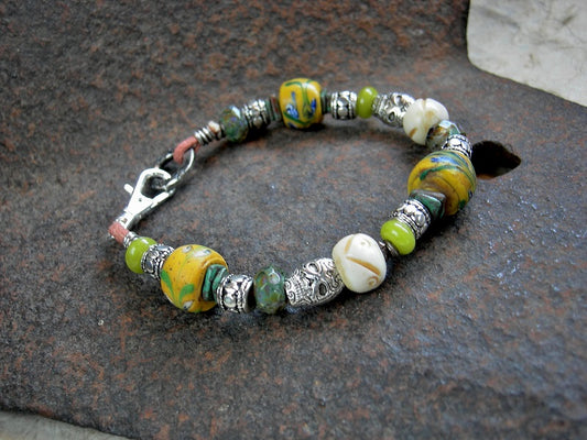 Summer Field Bracelet, Antique Venetian Trade Glass, Yellow & Silver