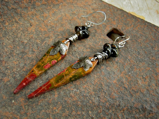 Blood Tipped Stone Tab Earrings, Red Creek Jasper Daggers
