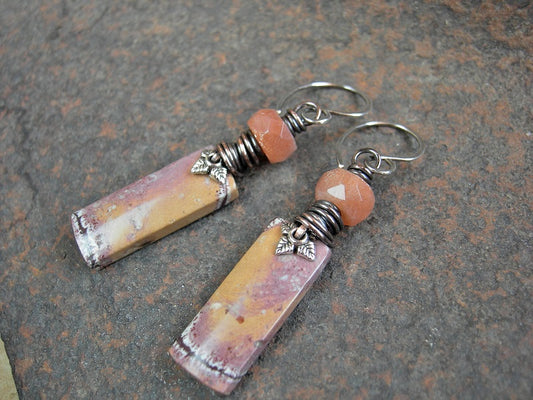 Adobe Sands Earrings, Hand Cut Rhyolite Stone Tabs, Sunstone